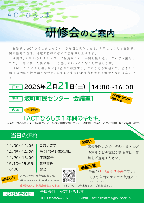 2024年2月17日、お知らせに3月の研修内容を追加しました。