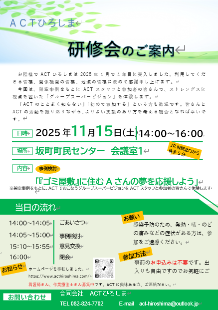 2024年10月18日、お知らせに11月の研修案内を追加しました。
